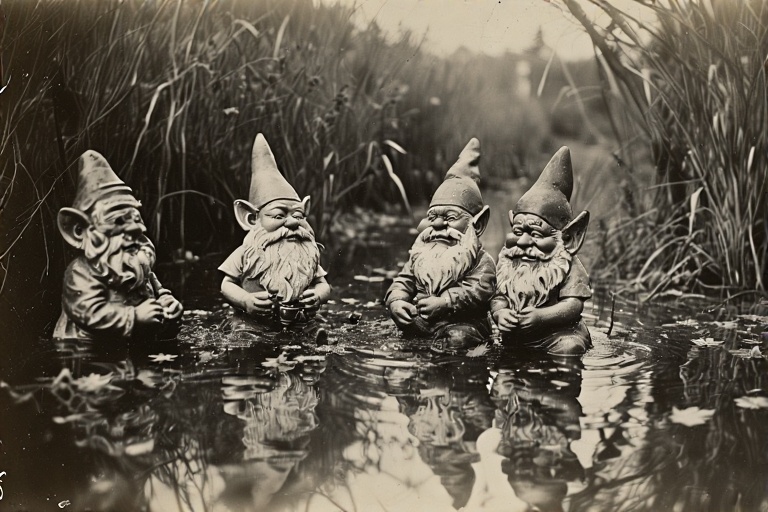 Wherein eight gartenzwerge go on the lam down Strawberry Creek after Ruddy’s overzealous jellyspreckling of the crocks cracked their (the gartenzwerge’s) kilning bond and incited a hasty flight of…